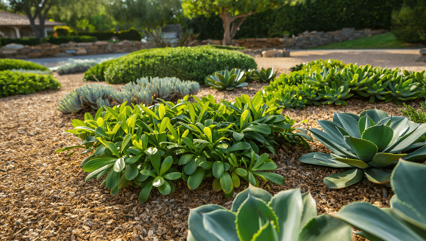 Succulents, agave, yucca, cacti, native shrubs.